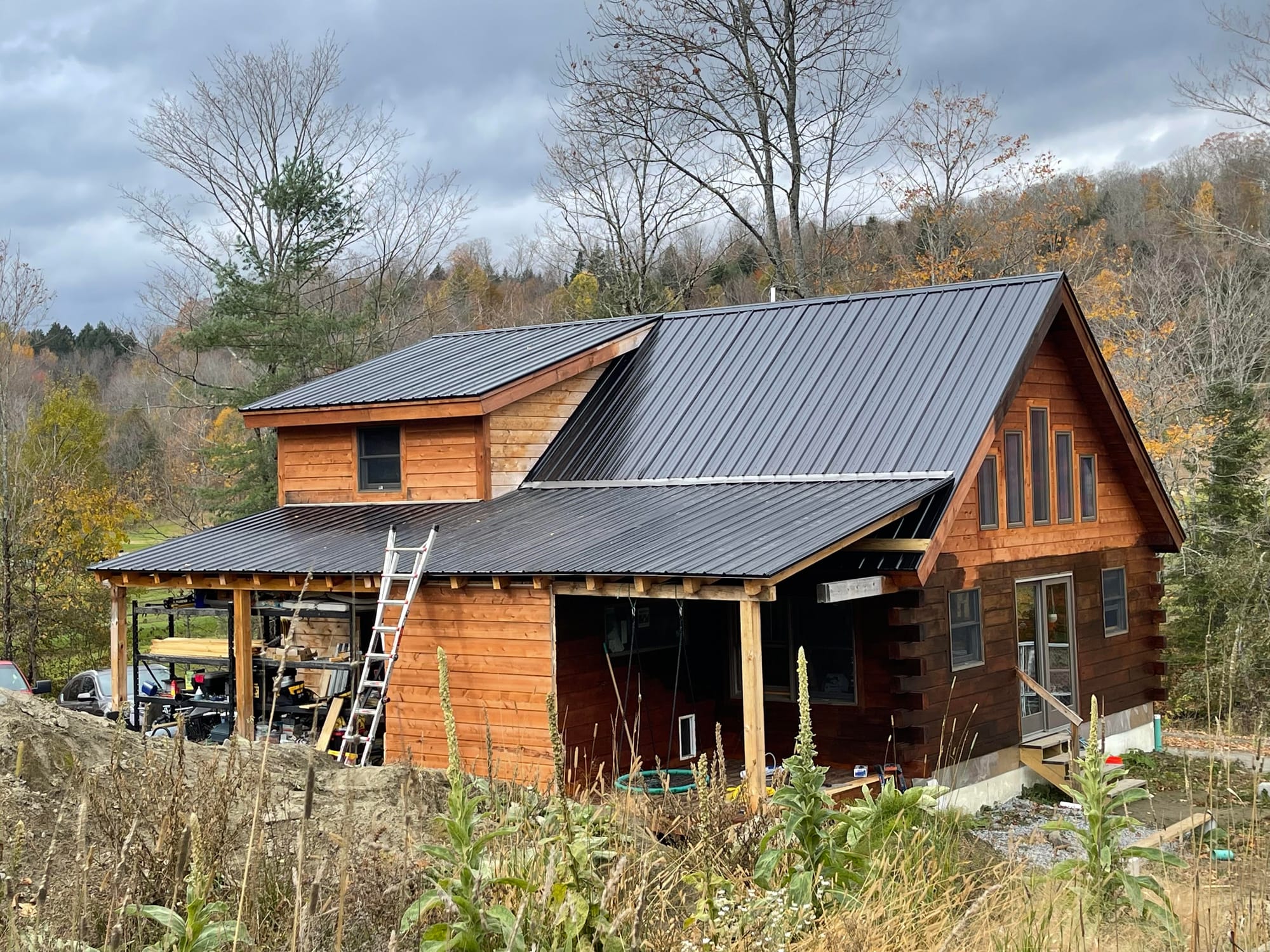 Following the closing, there would be ground prep, surveyor, site selection and the shell construction by the team who built the log cabin on top of our cellar pad. Roof, windows and finally, by the second week of October, 2021, a shower curtain front door would follow. Dividing the interior, adding pex for plumbing throughout, building cabinets, tiling the downstairs bathroom, kitchen countertops, deck builders who lived on the property, a travel trailer rental misadventure and lastly, an ADU gone wild in the summer of 2024.