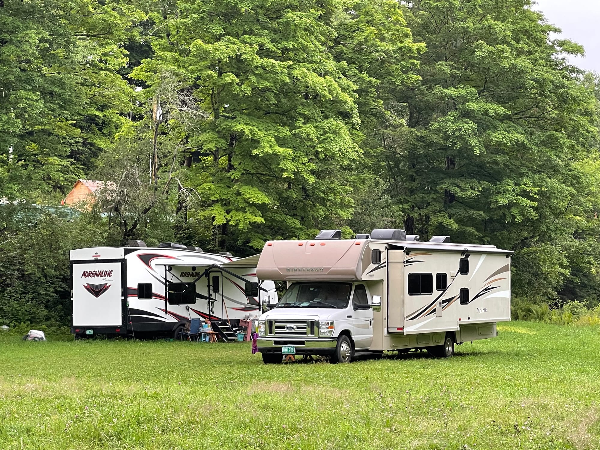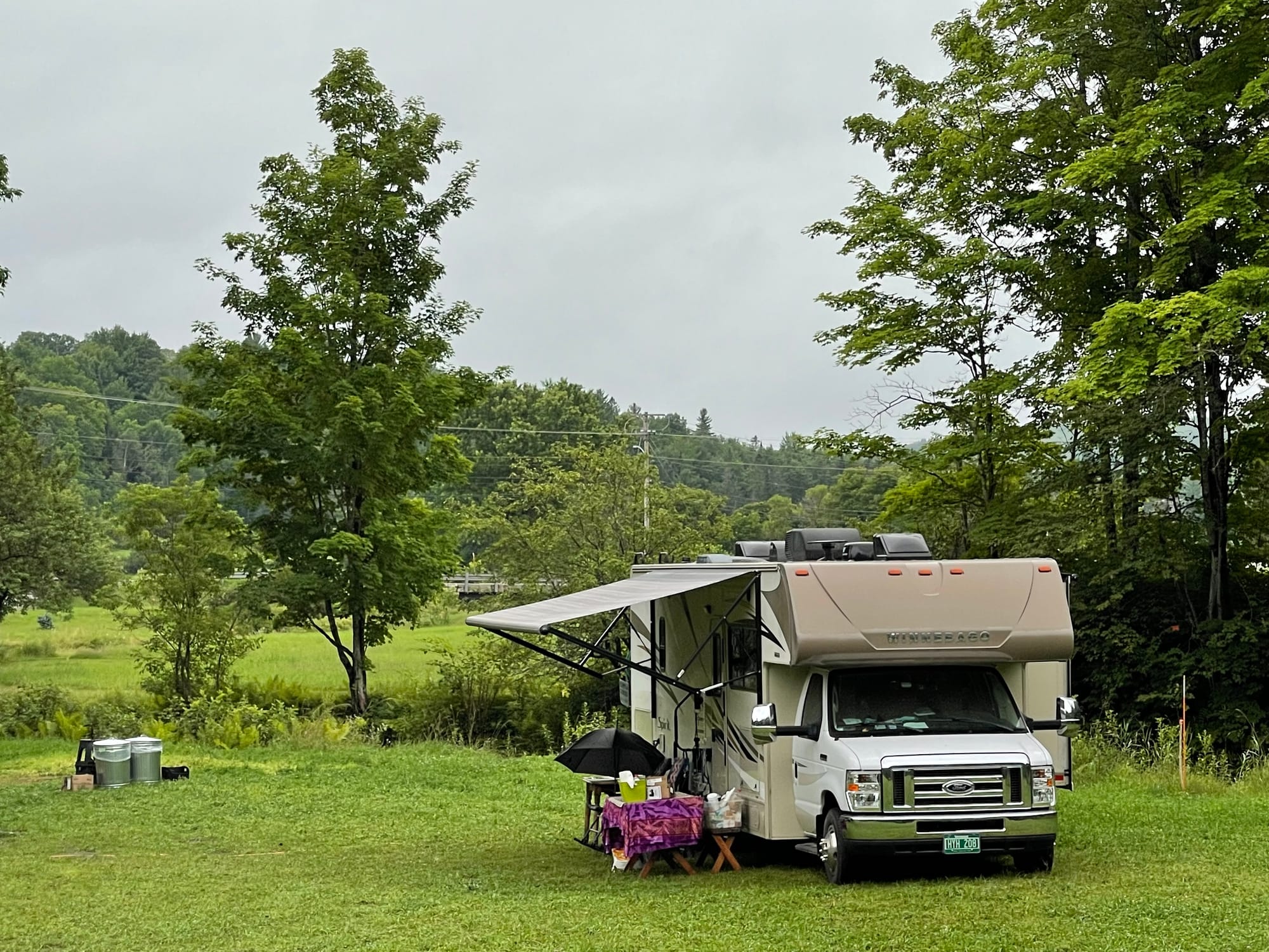 If you ever wanted a spot in late-spring, all summer long and into the fall, this is the place. The grass is greener, the air is fresher, and the water trickles or rushes by. The Town of Cabot allows each landowner in town three camp spots. Three RVs, an RV and two tents, a van, a tent and an RV, you get the idea.